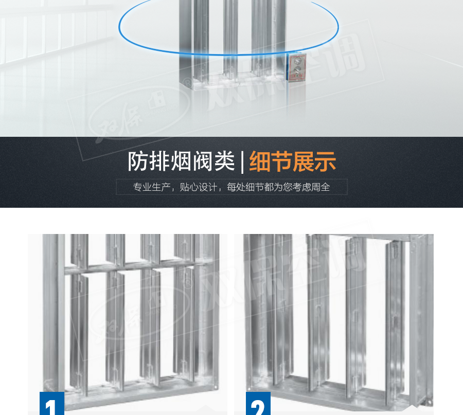 江蘇雙保空調有限公司—遠控多葉排煙口 閥門平時常閉; Dc24V電動開啟,遠控手動按鈕開啟,輸出開信號; 遠控手動復位。